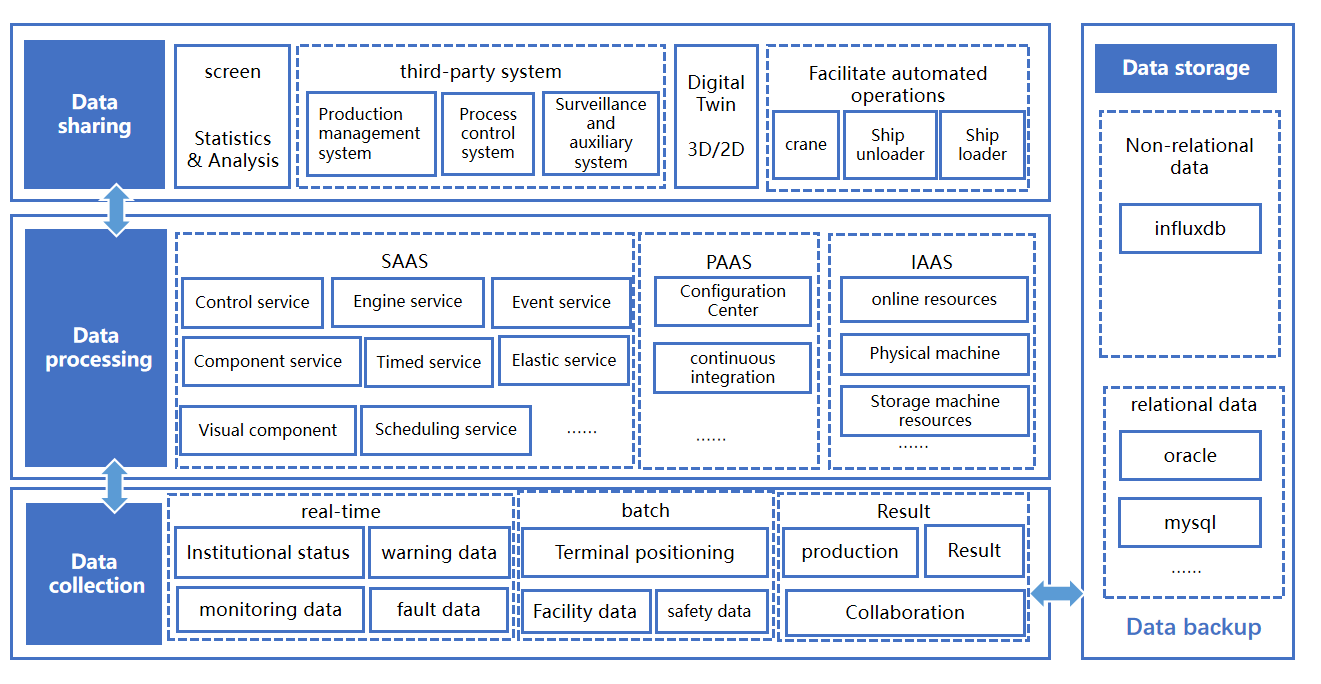 The data sharing platform offers a comprehensive set of data services, encompassing "data collection, data filtering, data storage, and data sharing", among others. It enables full perception, extensive interconnection, data collaboration, and high-level data sharing among various systems, equipment, and facilities in the port. The integration and upgrade of IoT data with application system data achieves "one-time data collection and unrestricted data sharing", avoiding redundant construction and resource waste in related projects.